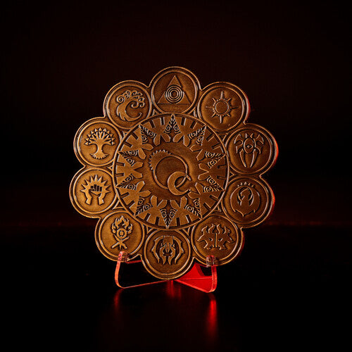 Tablet of the Guilds enters the battlefield! This limited edition Magic: The Gathering medallion recreating the famed tablet is finished in antique gold plating. Each one is individually numbered to the reverse and is limited to 5,000 worldwide.